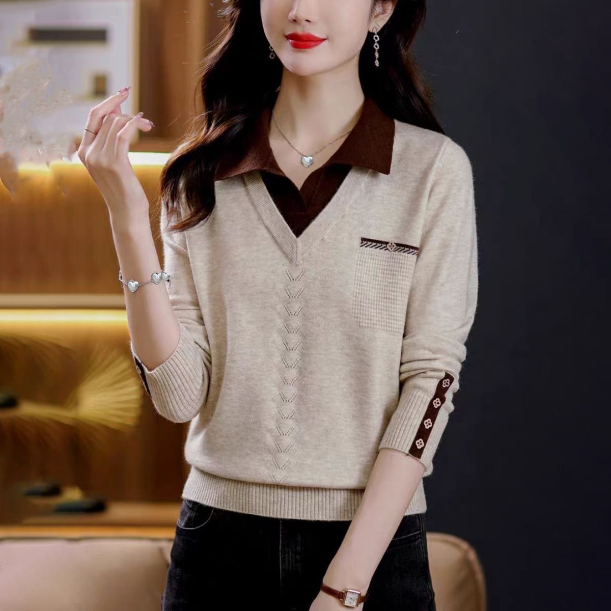 【全臺熱賣】拼接氣質減齡毛衣 不挑年齡 不挑身材 拼接撞色寬鬆版型 修身顯瘦 小肚腩不見了 怎麼穿都好看